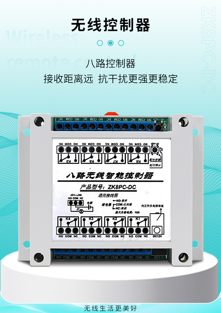 四、本控制器采用超外差接收模块,接收灵敏度更高,接收距离更远,抗干扰更强更稳定。
