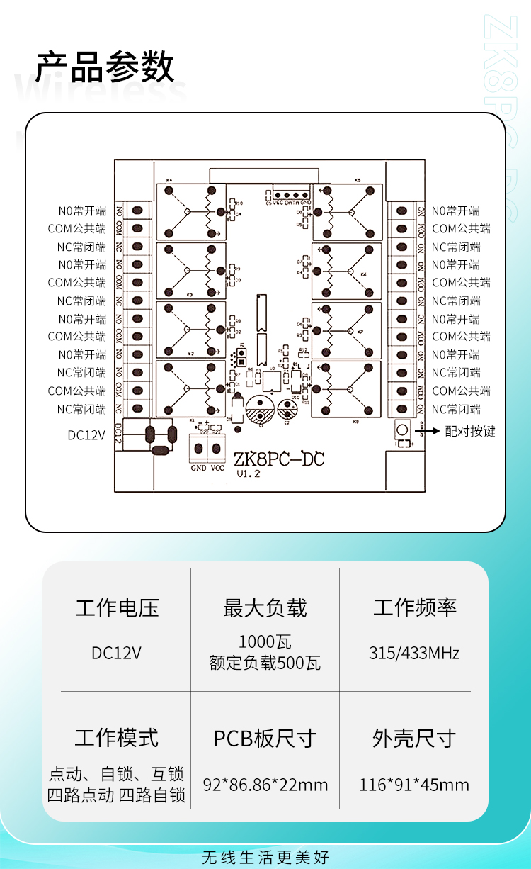 五、工作稳定,采用超外差接收模块,抗干扰能力更强,工作更稳定
