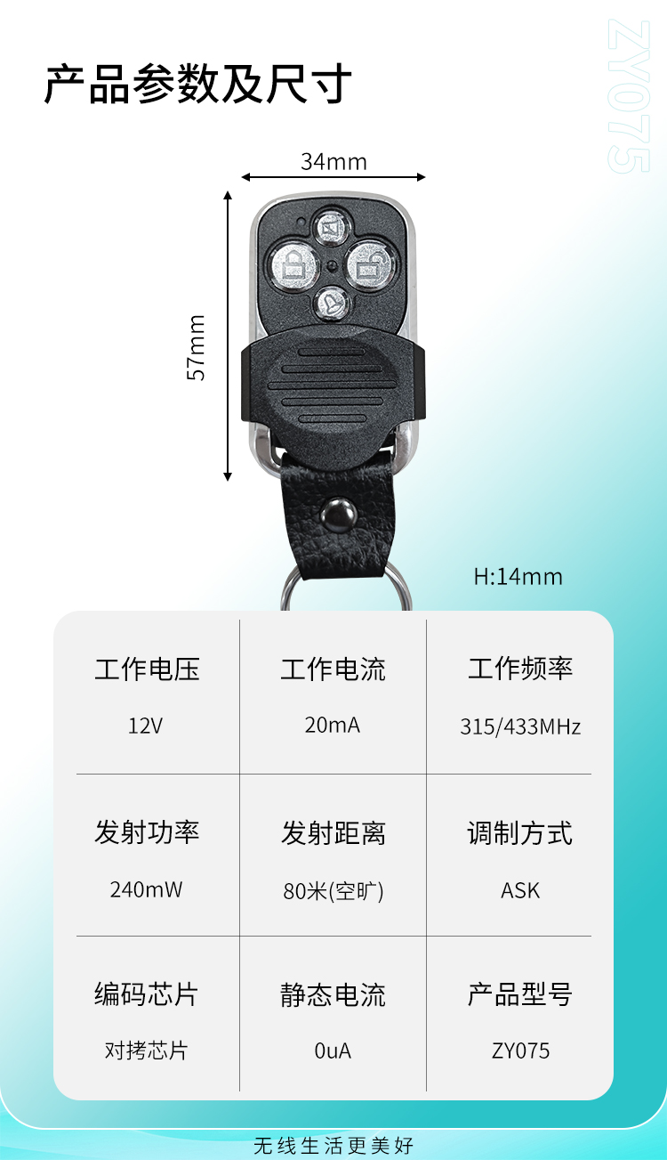 ZY075是一款对拷型黄瓜视频污污污遥控器,滑盖设计,带有固定钥匙扣