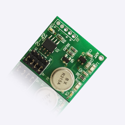 第三、DF数据模块采用ASK方式调制,以降低功耗,当数据信号停止时发射电流降为零,数据信号与DF发射模块输入端可以用电阻或者直接连接而不能用电容耦合,否则DF发射模块将不能正常工作。数据电平应接近DF数据模块的实际工作电压,以获得较高的调制效果。