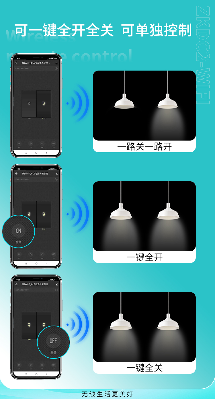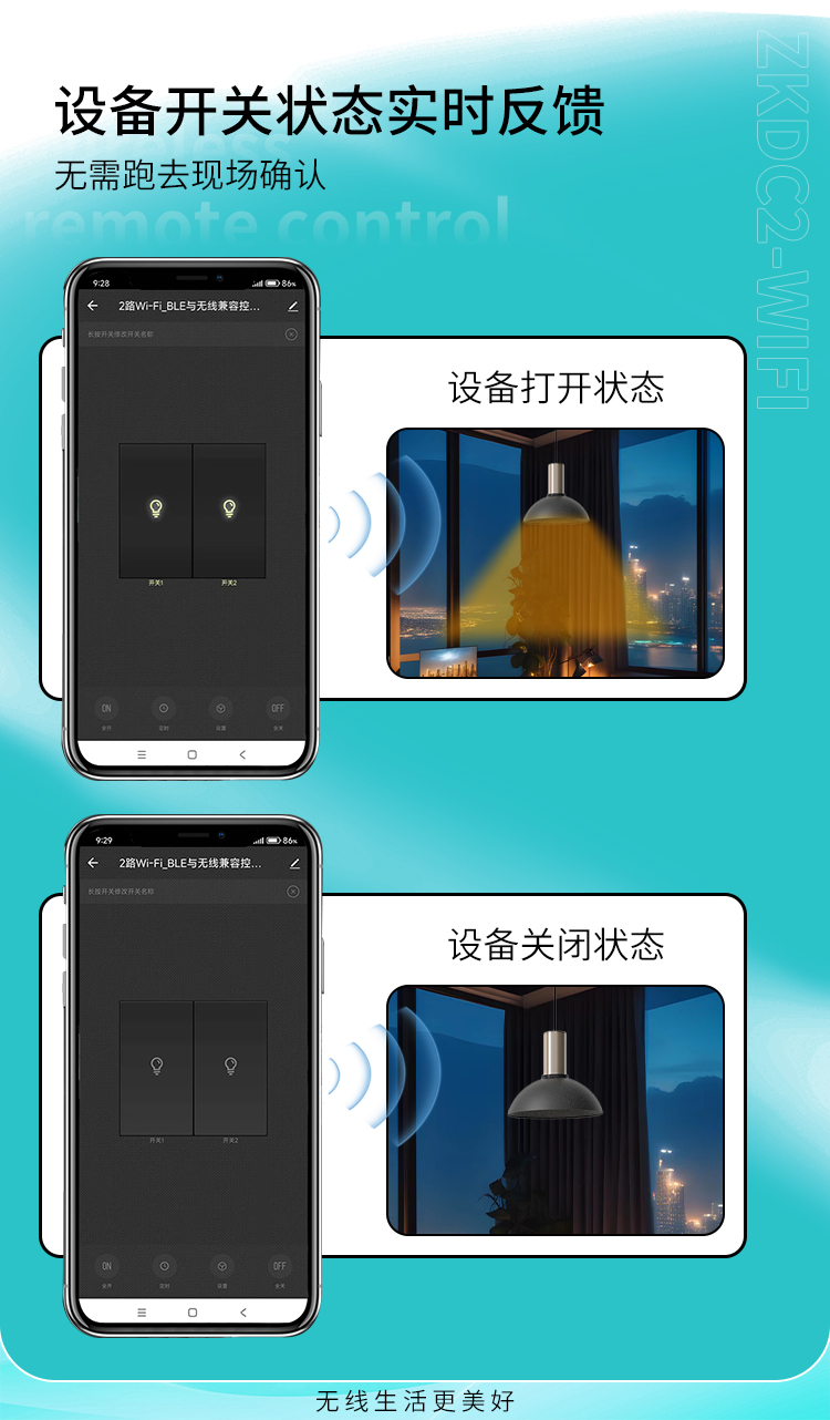 ZKDC2-WIFI是一款智能遥控开关,可通过涂鸦APP手机远程控制开关