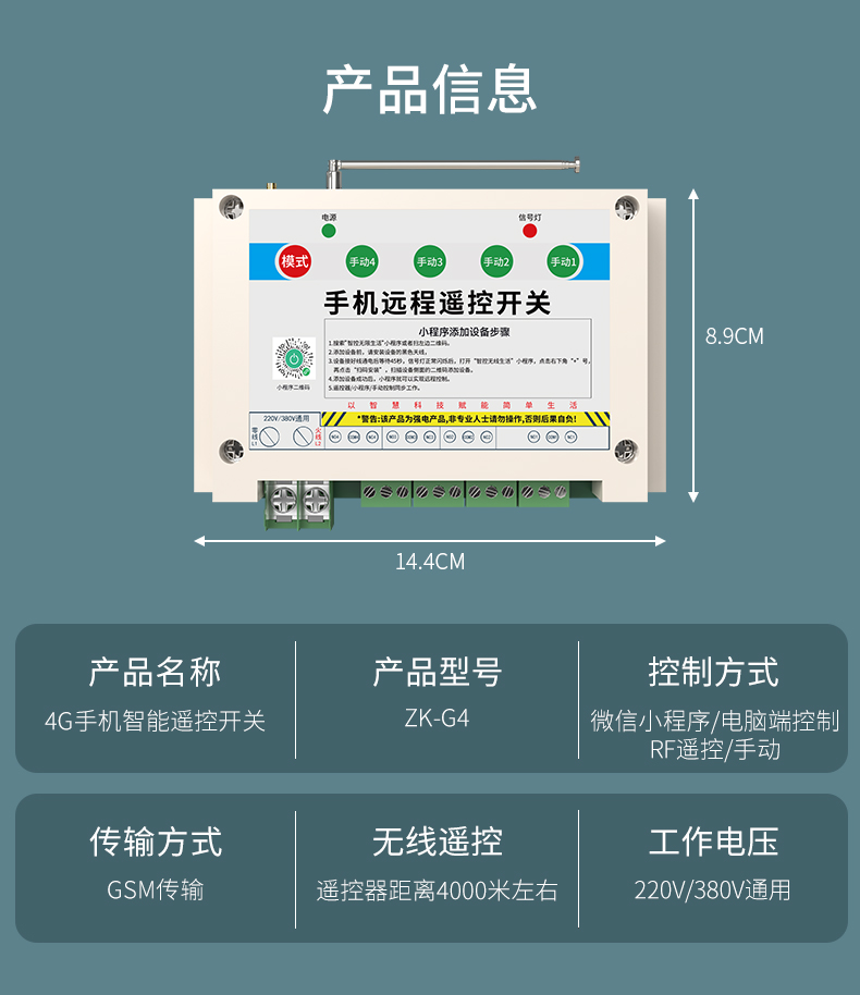 Z信K-G4是一款四路智能遥控开关,手机微小程序即可远程控制,不限距离,四种定时模式,SOS、断电报警提示