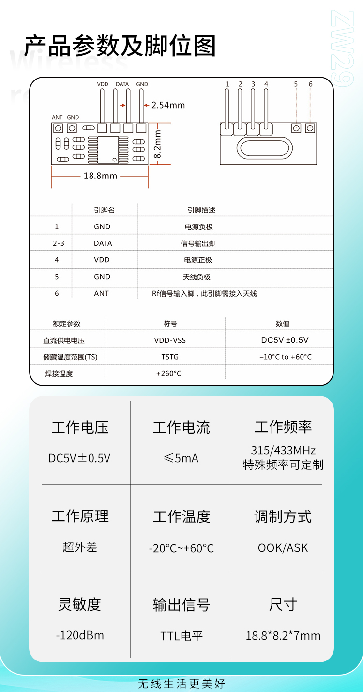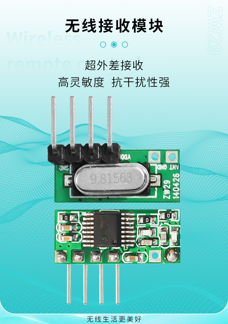 ZW29是一款低价格、高性能的ASK/OOK(ON-OFF Keyed)黄瓜视频污污污接收模块,主要黄瓜视频旧版破解版黄污于黄瓜视频污污污遥控接收领域。与其他超外差接收模块比较,具有价格便宜,性能好稳定特点。灵敏度能达到-120dBm,大大增强了接收距离。