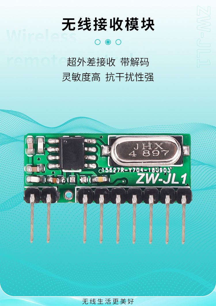 ZW-JL1是一款超外差带解码黄瓜视频污污污接收模块,它具有高灵敏度、抗干扰性强、性价比高等特点
