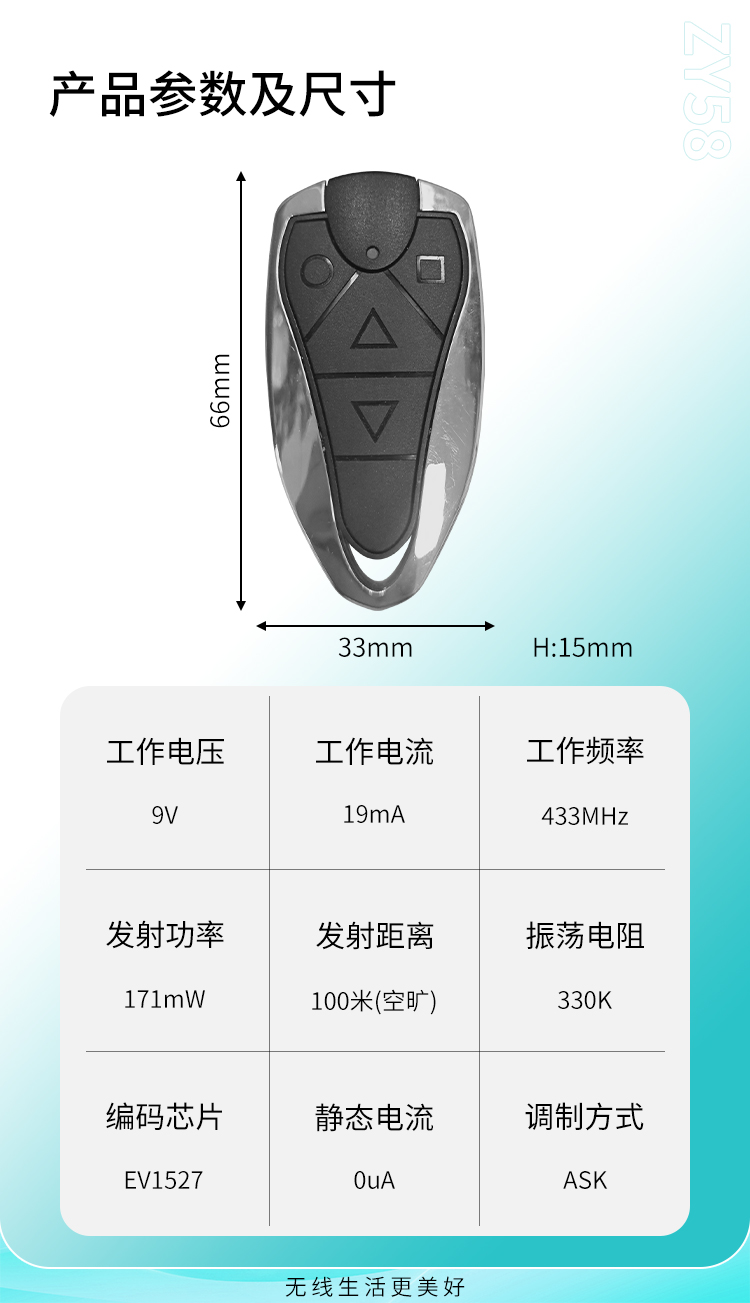 ZY58-5是一款具有5个触发按键的黄瓜视频污污污遥控器,可以跟本公司的接收模块与控制器配套使用;也可以单独为客户黄瓜视频旧版破解版黄污,ZY58-5黄瓜视频污污污遥控器,具有可靠性高、频率稳定、穿透能力强等特点;