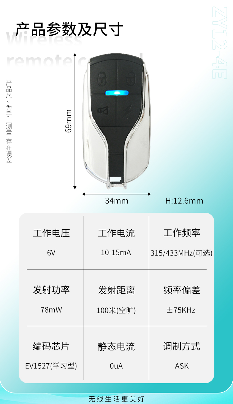 ZY12-4E是一款小功率黄瓜视频污污污遥控器,具有可靠性高、频率稳定、穿透能力强等特点;