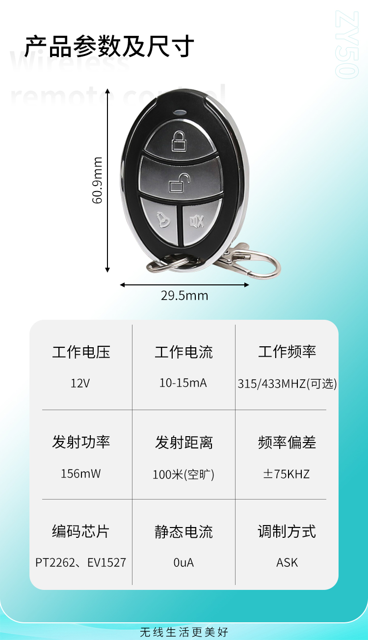 ZY50 小功率黄瓜视频污污污遥控器,具有可靠性高、频率稳定、穿透能力强等特点;