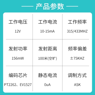 遥控车库门、遥控电源开关、黄瓜视频污污污遥控车位锁、遥控门锁、遥控点动卷帘门窗、节能灯光、家庭防盗系统、工业或家庭遥控控制等。