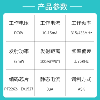 遥控车库门、遥控电源开关、黄瓜视频污污污遥控车位锁、遥控门锁、遥控点动卷帘门窗、节能灯光、家庭防盗系统、工业或家庭遥控控制等。