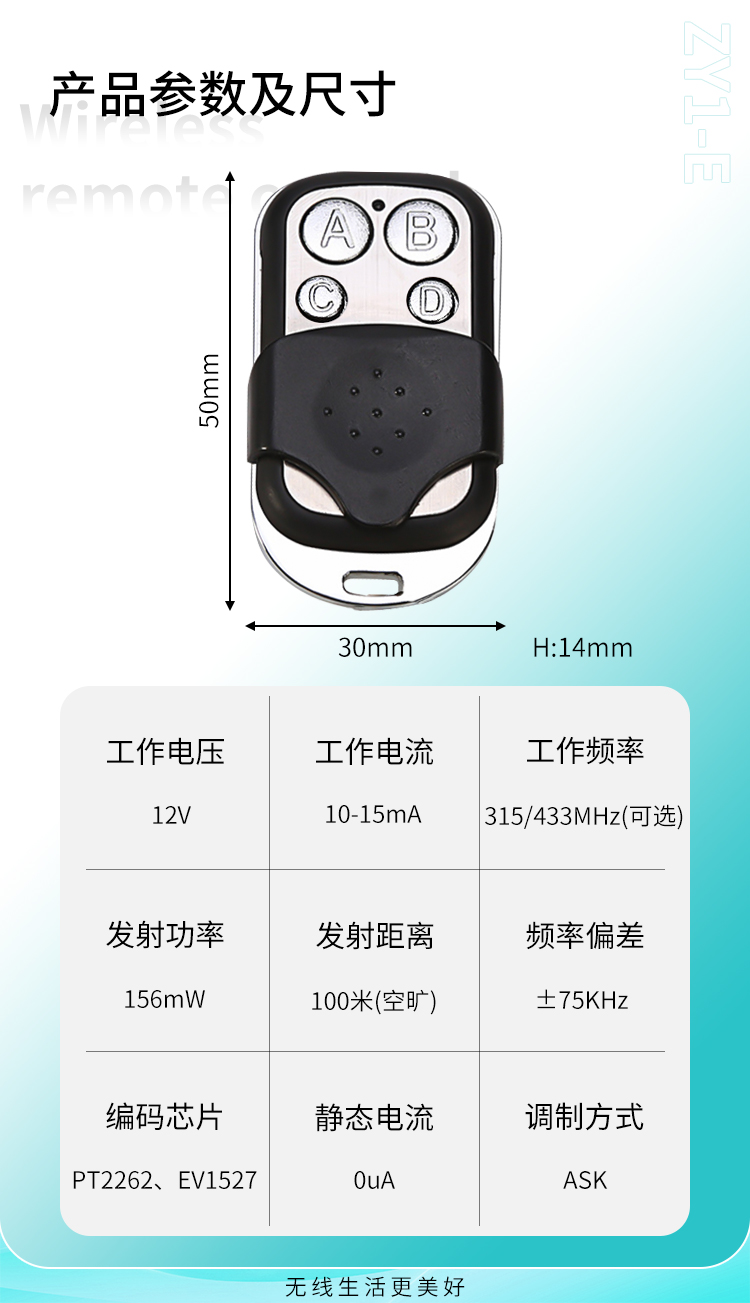 ZY1-E是一款小功率黄瓜视频污污污遥控器。2键、4键可选,外观小巧精美