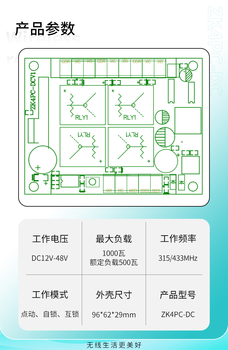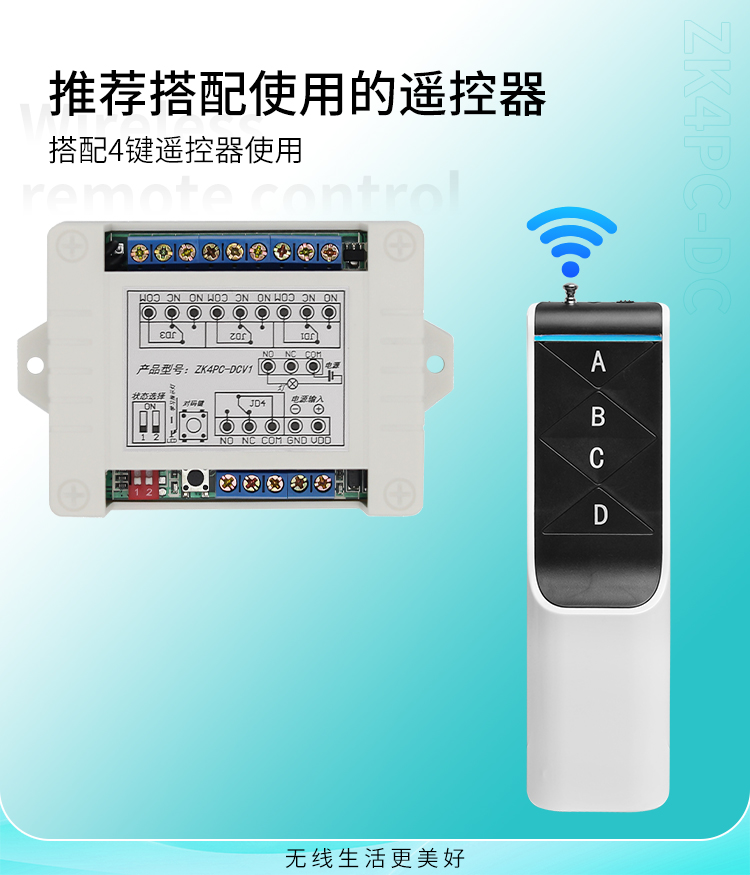 4.本控制器采用超外差模块接收,灵敏度更高,接收距离更远,抗干扰更强更稳定。