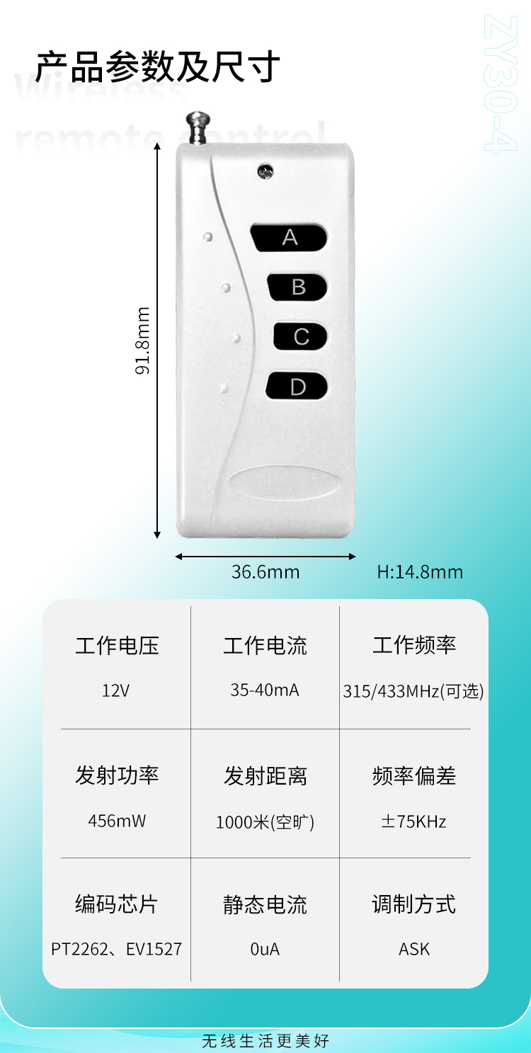 ZY30T-4是一款中功率黄瓜视频污污污遥控器,具有可靠性高、频率稳定、穿透能力强等特点;