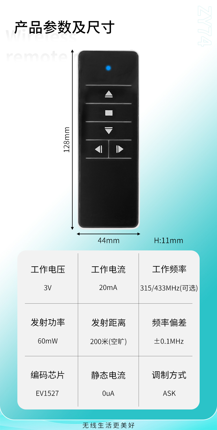ZY74指示灯是一款中功率遥控器,具有可靠性高、频率稳定、穿透能力强等特点;